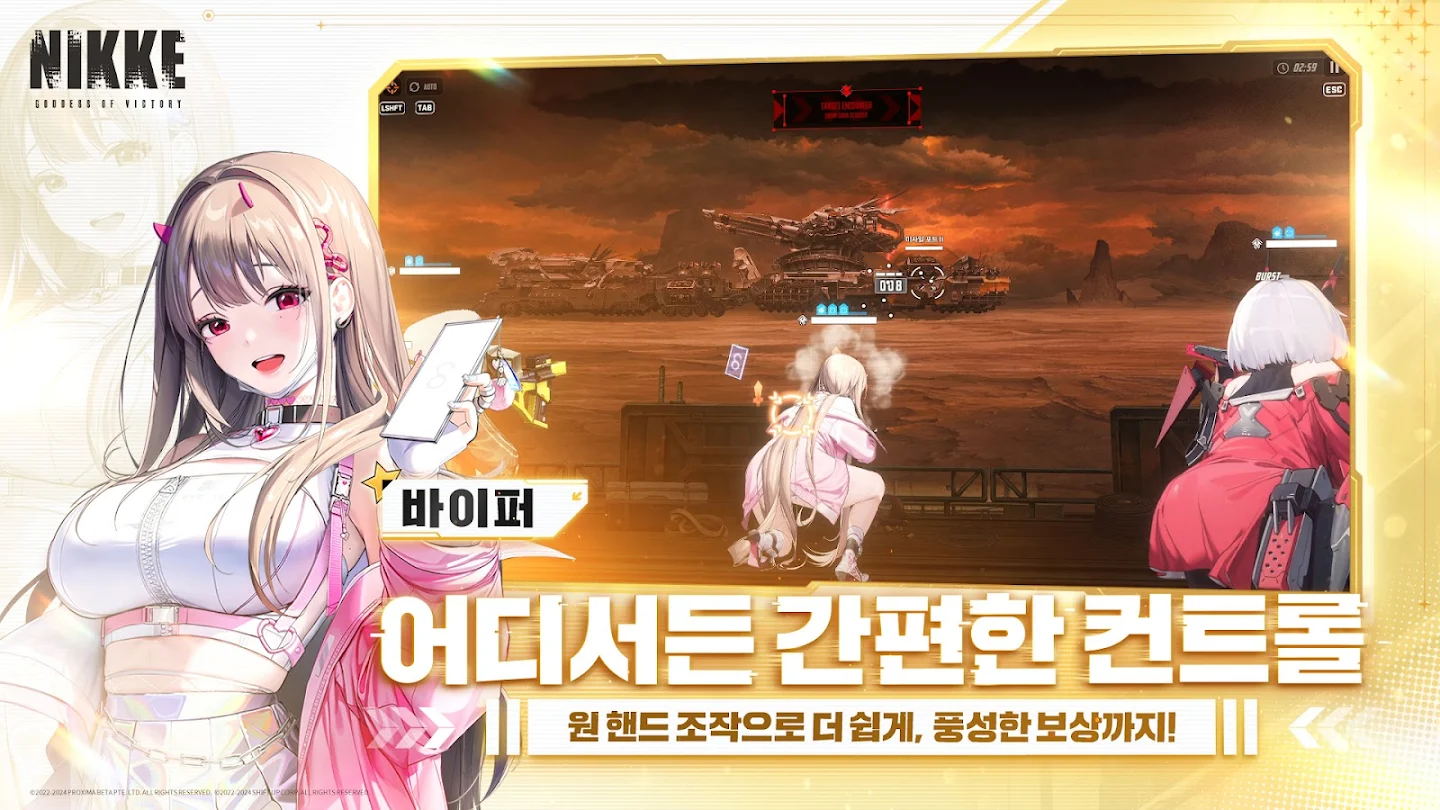 - 매력적인 캐릭터 디자인: 김형태 AD의 뛰어난 일러스트와 3D 모델링으로 구현된 개성 넘치는 니케들을 수집하고 육성할 수 있습니다.